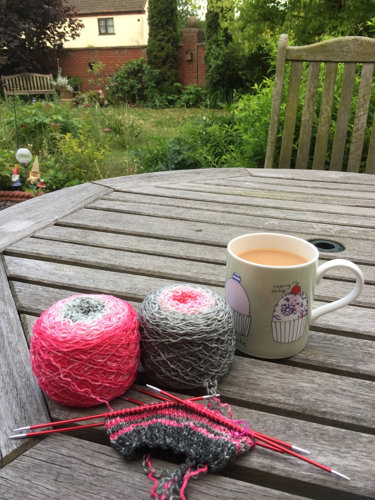 I've split it into two yarn cakes and the plan is to knit another pair of stripy socks, starting with dark grey and dark pink stripes and moving to pale grey and pale pink stripes. I love how the yarn looks in the cakes...